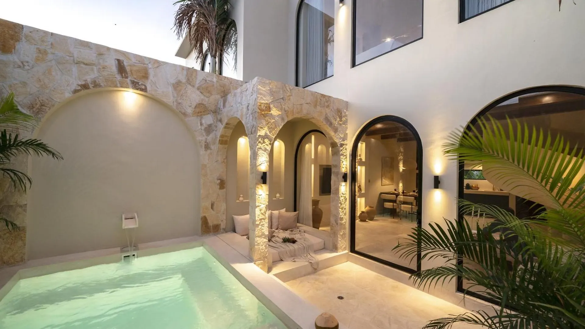 Villa Eyla Pererenan Canggu ligt in de wijk Babakan van Canggu binnen 6 km van de Pura Tanah Lot en beschikt over een privézwembad en uitzicht op het zwembad. De villa verwacht gasten op een terras met een zwembad.